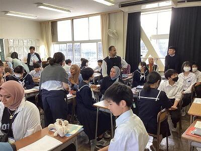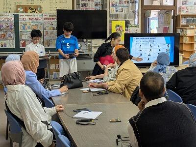 エジプト政府の国策で、日本の教育をエジプトにも導入するため、エジプト-ジャパンスクール(略称:EJS)から10名の先生方が福井の教育を学びに明倫中学校を訪問しました。