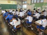 1年生は定期考査は2回目。個人差はありますが、テストの雰囲気にも慣れ、真剣に鉛筆を走らせていました。これまでの授業の理解度を測るテストです。あきらめず粘り強くテスト問題に挑戦していきましょう。