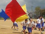 2年生:自組の応援旗を掲げて走るリレー競技の定番「大旗リレー」