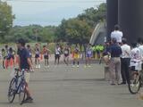 今年も福井市安田グラウンドで福井地区の駅伝競走大会が行われました。多少蒸し暑いコンディションになりましたが、福井地区内からたくさんの中学校が出場しました。女子は1、5区は3km、2~4区は各2kmの計12km。男子は1~6区各3kmの計18kmでタスキをつなぎます。