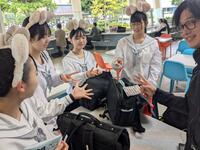 早速、班ごとに携帯電話を受け取り、ホテルを出発。各班が目指す研修先に向かいました。