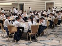 6時起床で朝食会場に集まってきました。「良く寝ることができた」という声も聞こえました。大きく体調を崩した生徒もおらず、朝食タイムです。